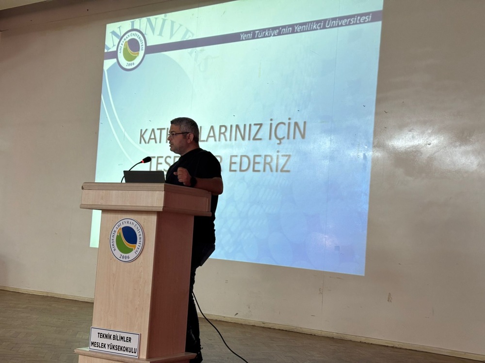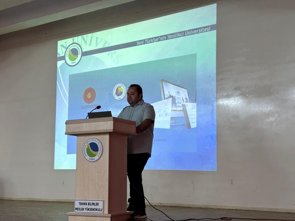 Ayrıca, üniversitemizde gerçekleştirilen faaliyetlere ilişkin sunuların Teknik Bilimler Meslek Yüksekokulu sayfasına yükleneceğini belirtti. İsteyen öğrencilerin, yüksekokulumuz sayfası üzerinden üniversitemiz, yüksekokulumuz ve daire başkanlıklarımız tarafından hazırlanan sunulara ulaşabileceklerini ifade etti.