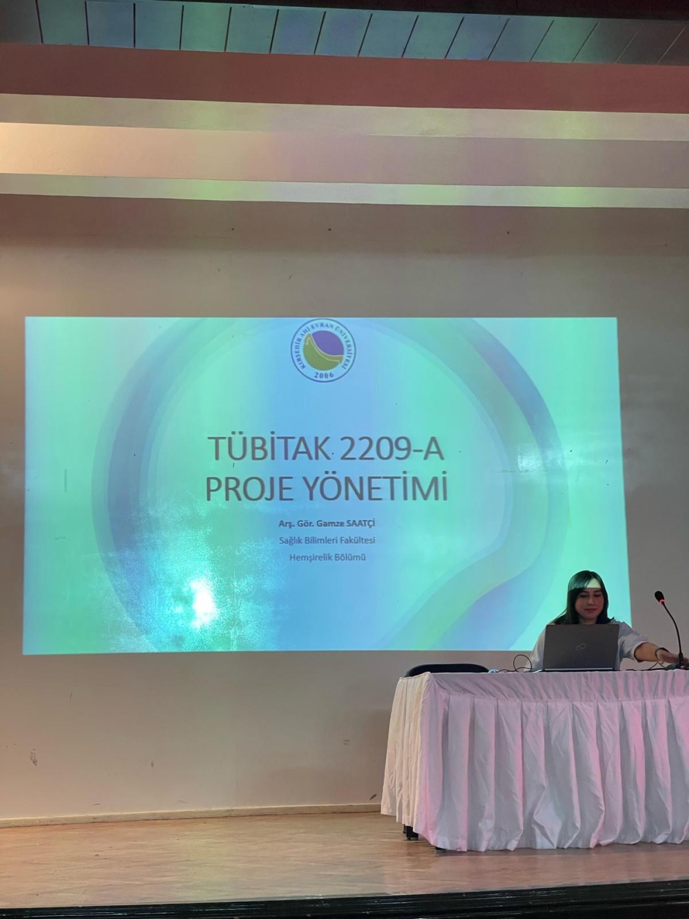 Yüksekokulumuzda 21 Nisan 2024 tarihinde Sağlık Bilimleri Fakültesi Hemşirelik Bölümü öğretim elemanı Arş. Gör. Gamze SAATÇİ tarafından “TÜBİTAK 2209-A Proje Yönetimi” konulu eğitim gerçekleştirildi.